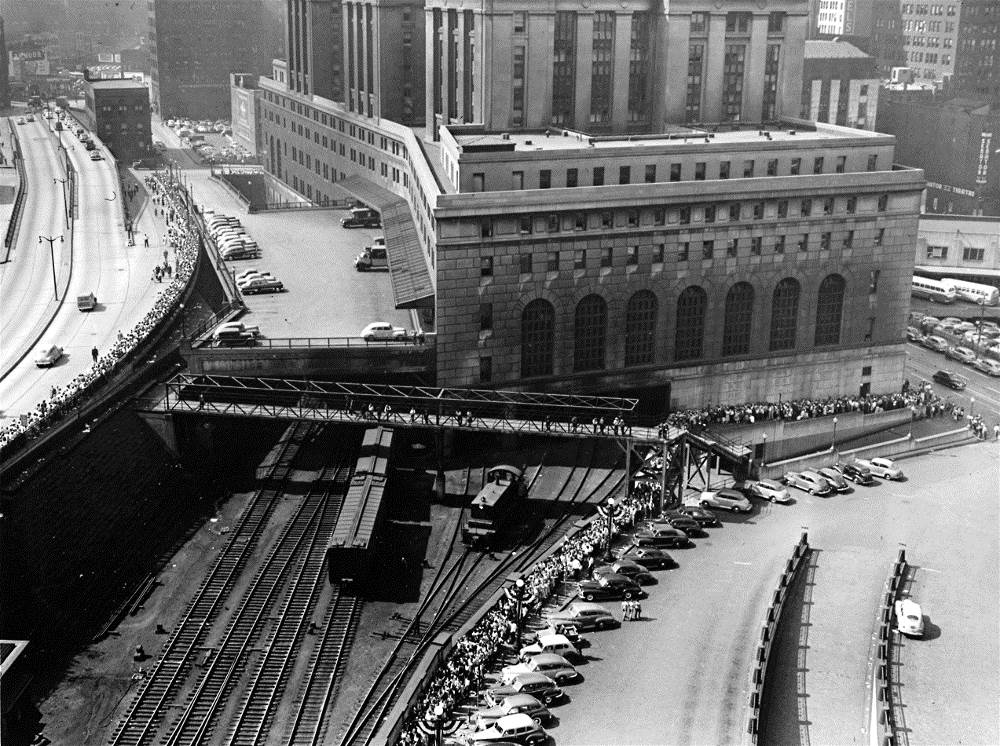 As in 1948, the Freedom Train was a huge attraction in the city. Once again, the train rested at the Union Station along Grant Street and Liberty Avenue. The train was surrounded by military guards and viewed by tens of thousands of enthusiastic visitors.