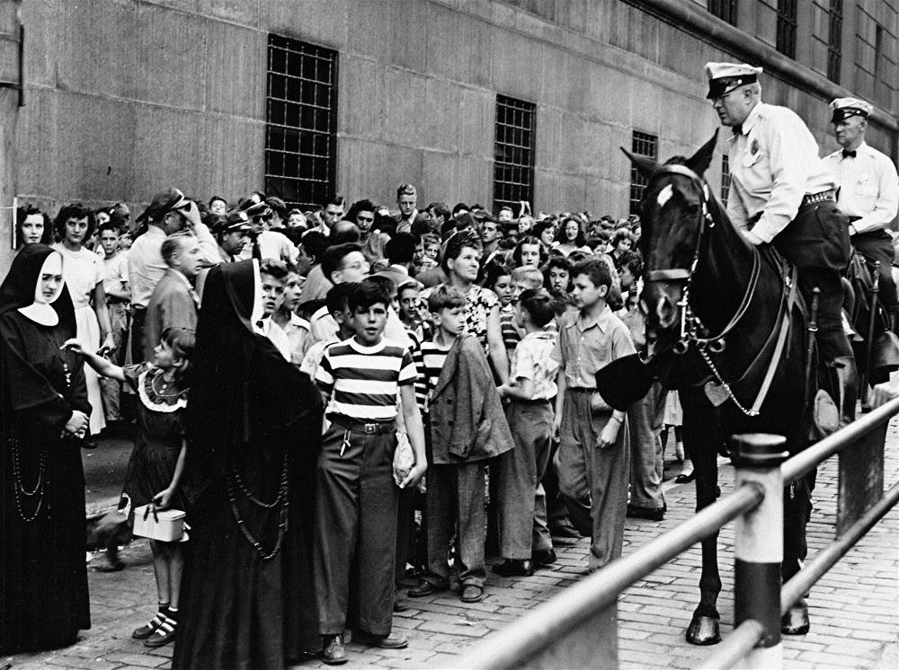 On September 15, 1947, the Freedom Train stopped in Pittsburgh for a three-day stay at the Pennsylvania Railroad Station along Grant Street and Liberty Avenue. For several days before its arrival, local newspapers and radio stations ran a series of patriotic announcements heralding the event. A Pittsburgh Railways streetcar crisscrossed the city painted in the official train colors encouraging citizens to "See The Freedom Train." In downtown Pittsburgh, long lines of visitors formed hours before the exhibition opened. The train became the most viewed attraction since LST-512 docked on the Monongahela shoreline during the Great Lakes War Bond Drive in October 1945. As a show of respect, men removed their caps before entering the exhibit.