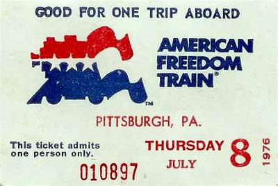 Another Huge National Success After a three-day stay in Pittsburgh, the train continued on it's patriotic journey, which finally came to an end on December 31, 1976 in Miami, Florida. Over a twenty-one month period, more than seven million Americans visited the American Freedom Train during its grand tour of all forty-eight contiguous states. Tens of millions more onlookers stood trackside to watch it go by. It was by far the greatest event on rails since the end of the steam era, and a uniquely magnificent vehicle that brought the Bicentennial celebration to the people. Organizers couldn't have been more pleased with the results and the success of their intended reawakening of America's dormant national pride. 1976 Freedom Train Video 1976 Freedom Train Slideshow