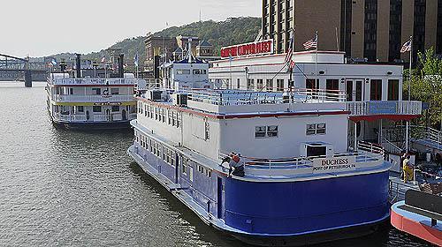 For twenty-four years, from 1958 to 1981, the Gateway Clipper Fleet was moored and launched from the northern bank of the Monongahela River along the Mon Wharf. In 1982, the fleet headquarters were moved to the southern bank, at historic Station Square. Since then, the fleet has continued to evolve and improve on the services offered to it's patrons. The largest boat ever to sail with the fleet, a 277 foot, 1000-passenger behemoth called "Majestic," was added in 1987. The fleet then consisted of the flagship “Majestic,” were the 600-passenger “Empress” (formerly the Party Liner, and now pushed by the tug "Empress II"), the 400-passenger “Duchess” (formerly the Liberty Belle) and 150-passenger “Countess” (formerly the Good Ship Lollipop). The final additions to the present-day Clipper Fleet were the 400-passenger "Princess" in 1999, and the "Three Rivers Queen," which was christened in May of 2013. All of the riverboats in the fleet are reminiscent of the quaint old riverboats that sailed the rivers in days gone by. Throughout the years more than twenty boats have been members of Pittsburgh's ever-evolving fleet, which is believed to be the largest inland riverboat fleet in the United States.