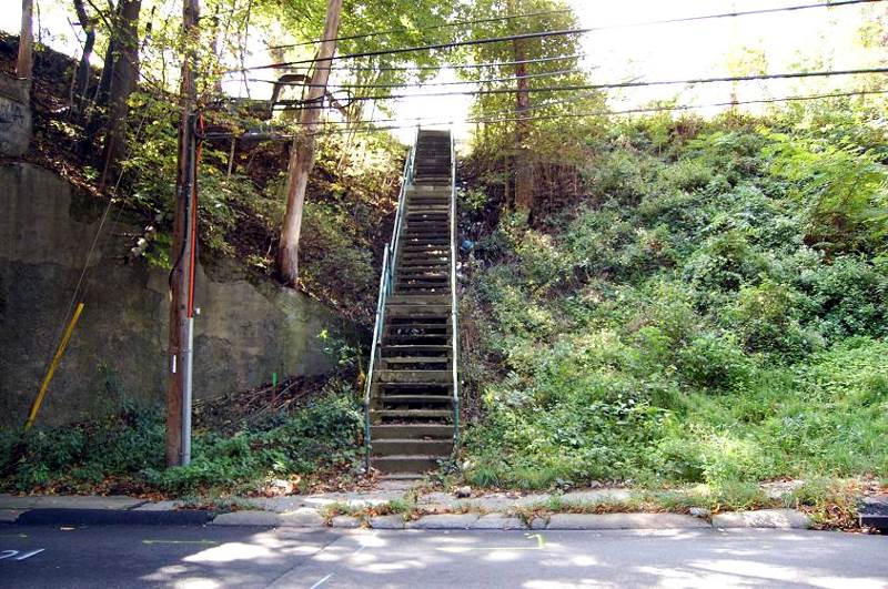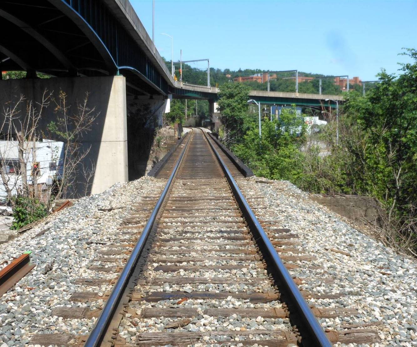 up the pylon that held the 1,200 volt power lines for the Harmony Line trolley and