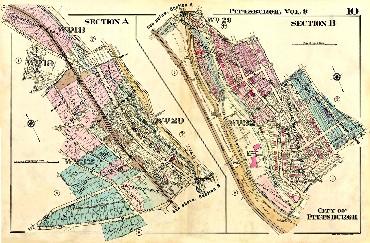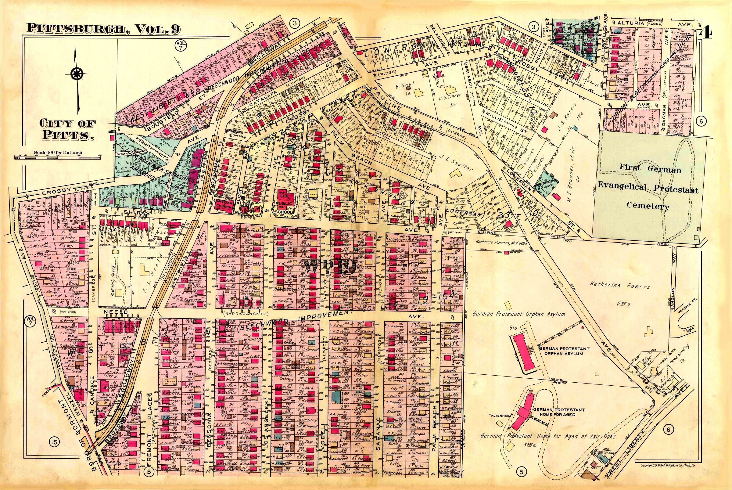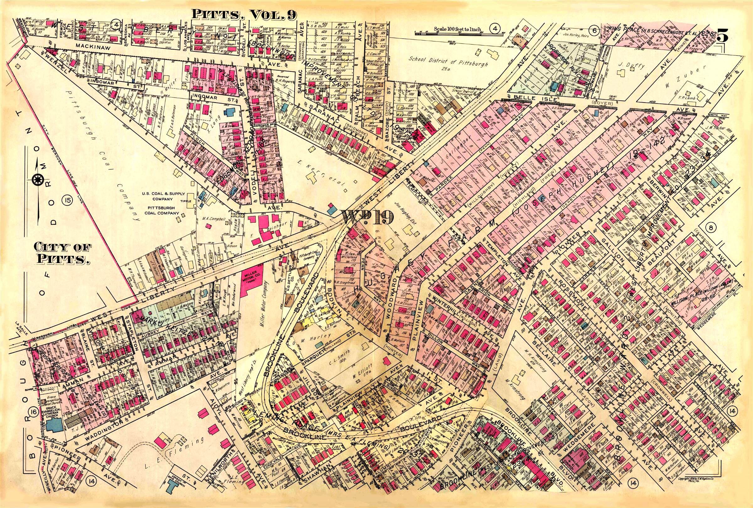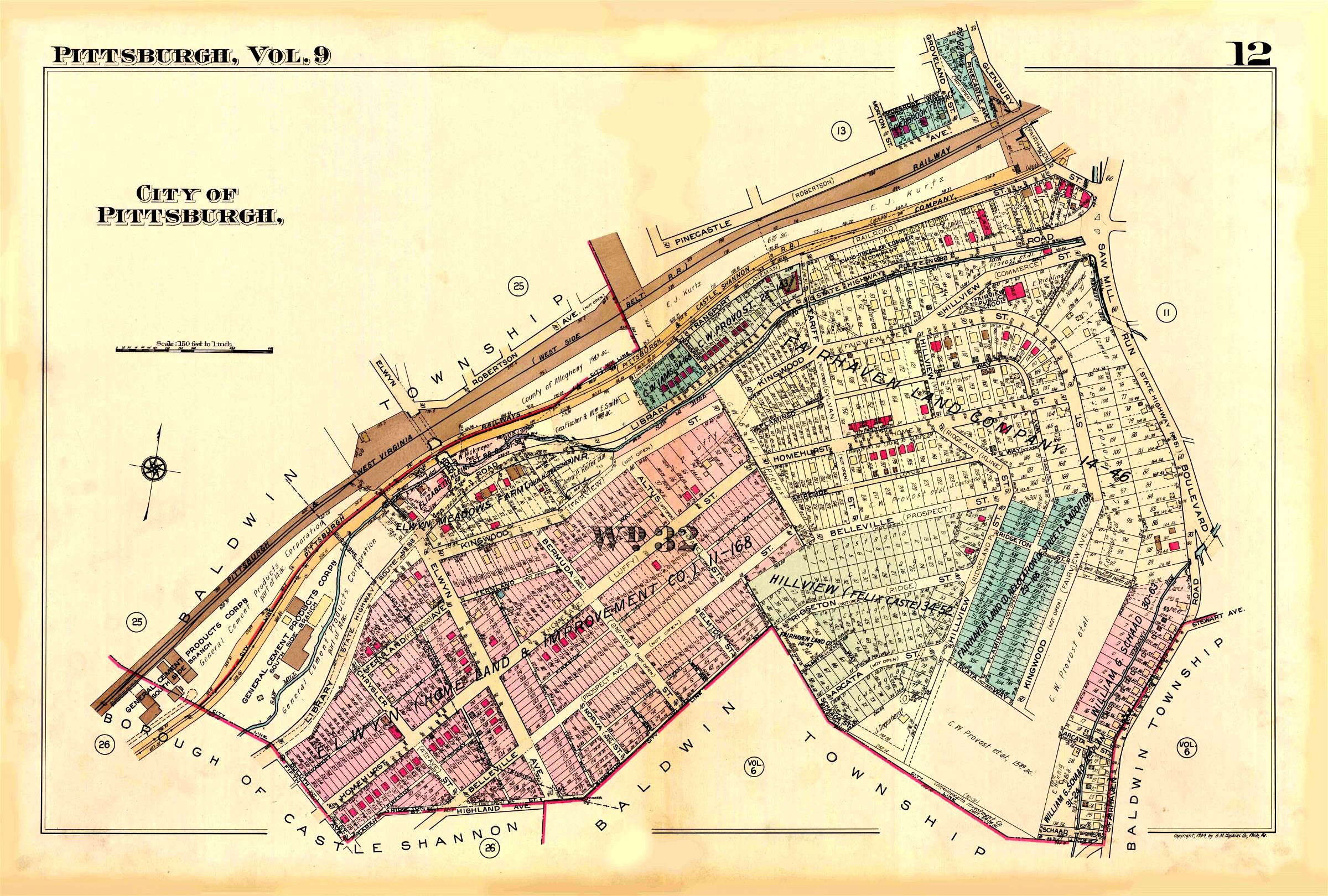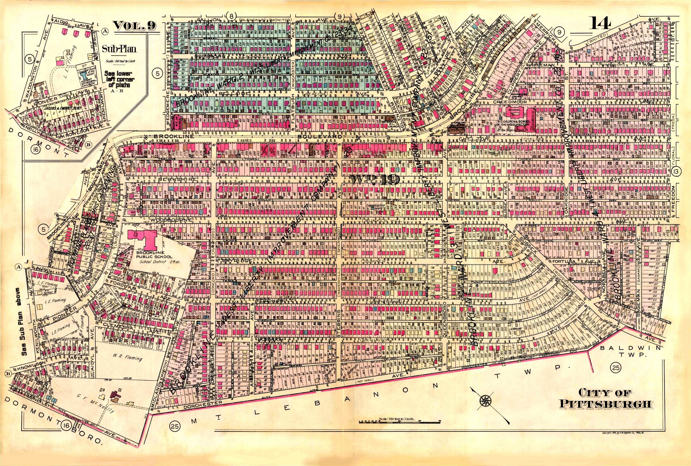 The following map sections make up a detailed look at the Brookline community and the perimeter areas in 1940. The individual sections below make up the numbered plates on the index map above. The original map was drawn in 1934 and revised in 1940. The map is a part of the The Hopkins Map Collection, located in the University of Pittsburgh's online Digital Library. |