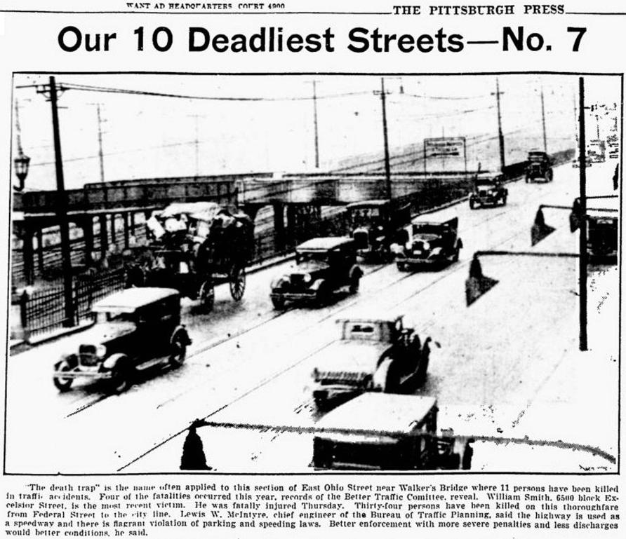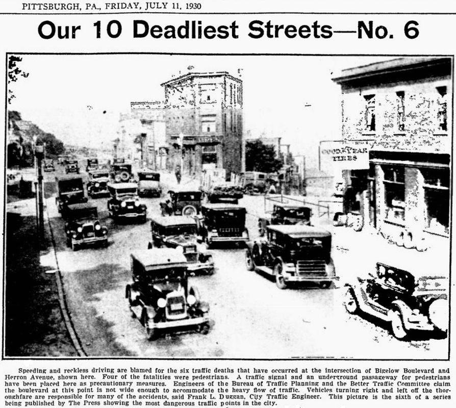 points are at the Bloomfield Bridge (five dead), Herron Avenue