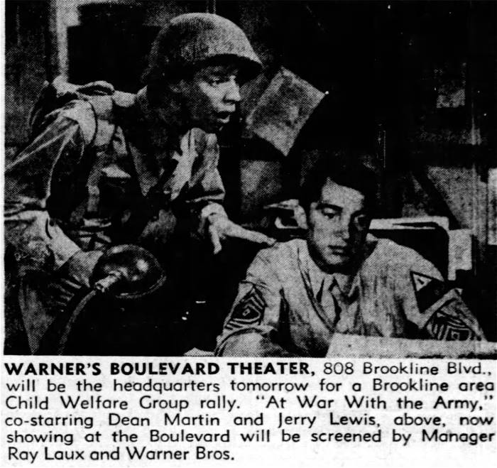 The Boulevard Theatre (1927-1952) The Boulevard Theater was built in 1927 by real estate developer and contractor George F. Wadsworth. Located at 808 Brookline Boulevard, it was originally called The Braverman, an independently owned community theatre and meeting hall.