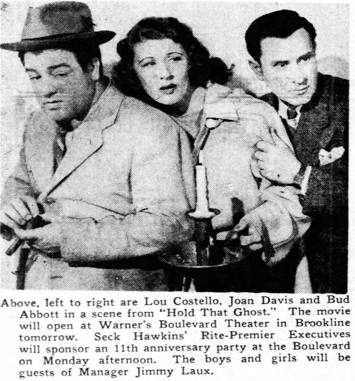 <><><><> <><><><> End of an Era The Boulevard Theatre closed on July 10, 1952. The final presentation was a double feature, the Abbott and Costello hits "Noose Hangs High" and "Africa Screams." The closing of the theatre marked the end of an era here in Brookline as both of the community's vintage movie houses were now a thing of the past. Brookliners now had to venture to nearby Dormont, or downtown Pittsburgh, for the cinema experience. The building that housed the Boulevard Theatre was sold to the Cedars of Lebanon Lodge for use as a meeting and banquet hall. After over fifty years as the club lodge, the group sold the building. It was leased for several years by Compulink Networks, and for the past few years has been converted into a combination restaurant, bar and nightclub. <><><><> <><><><>