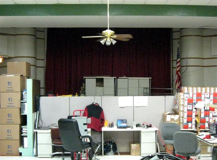 <><><><> <><><><> Vestiges of the Former Moviehouse Inside the building, there are still many reminders of it's glory days as a movie house. The stage and much of the peripheral ornamentation is still there. The projector room still houses two vintage movie projectors, weighing nearly a ton apiece. The owner of the structure made a point of retaining as much of the old theatre as possible. Although it has been over six decades since a feature length movie was shown at the old Boulevard Theatre, a trip up to the projector room and a little imagination can provide a nostalgic look back in time to the days when movie stars were larger than life and a family night at the movies for Brookliners was only a short walk away.
