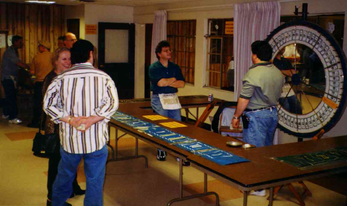 BLLA Monte Carlo Night II A Big Success The Brookline Little League Association held its second annual Monte Carlo Night at the Resurrection Parish cafeteria on Friday, February 25, 2000. The doors opened at seven o'clock, generous pockets opened wide and the wheels began to spin. An estimated 400 people paid the $7 entry fee and tried their luck at the money wheel, the big six, over and under, dice, instant bingo, 50/50, slot machines and of course, the card tables. There was plenty of good food to go around and several tables full of door prizes, ranging from baseball caps and shirts, to an autographed Snoopy sketch by the late Charles Schulz, to a cookware set (an item in heavy demand) autographed by the BLLA Bear himself, League President Tony Colangelo. In the absence of musical entertainment, a roaming Stan Scalise kept the crowd alive with the portable mic as he called out the various door prize winners and pointed the Brookline faithful towards their inevitable destiny with chance. The food ran dry sometime after midnight, but the taps were still wetting the palates of the card players well after the other games had shut down. At the strike of one the dealers were still shuffling and the poker faces were still glued to their cards. Spirits ran high on a spring-like evening, and luck shined its face upon the chosen few. Joanie Romano and crew mastered the odds at the Money Wheel, creating quite a buzz as spinsters Ange Masullo Jr. and Ernie DeIulius watched helplessly. And then there were the Zerbe's, who tried at instant bingo, looking for that elusive $50 winner. After a long night of hit and miss, the red ticket appeared, sending the lucky couple home a winner! It was a fun night for all involved, and there were many lucky ones in the crowd. The real winners, however, are the boys and girls of the BLLA baseball/softball program, who will get some much needed new equipment for the upcoming 2000 season with the proceeds raised. BLLA would like to thank everone for attending and special thanks to organizers Rich Joseph, Tim Reitmeyer and Rich Munizza, and also to the many volunteers who helped make this Monte Carlo Night a sesounding success. The boys and girls of Brookline will reap the benefits of your generous donation of time and materials. Click on images for larger pictures * Photos provided by Clint Burton * |