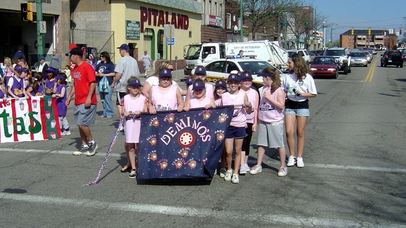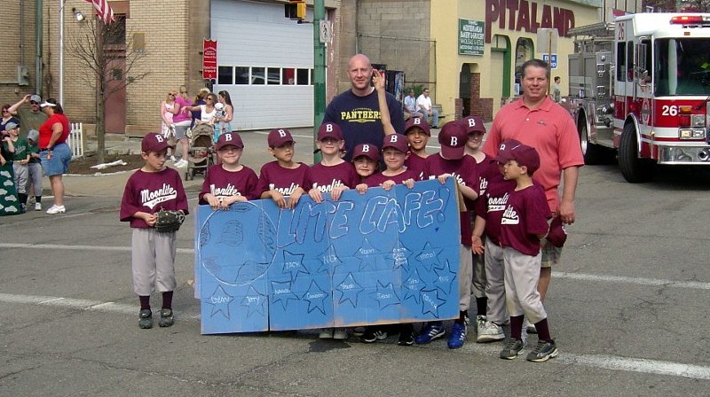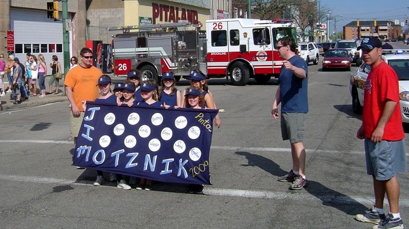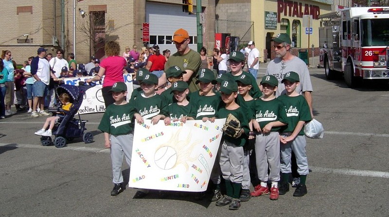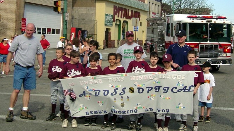 APRIL 25 - The Brookline Little League kicked off their 59th season with the annual parade down Brookline Boulevard to Sam Bryen Fields. The weather for opening day was sunny and bright, perfect for a ballgame. After the parade, the fields of Brookline Park were alive with the sounds of baseball and softball. Spring is here. Take me out to the ballgame! The three winners of the team banner competition were: 1st Place - Getaway Cafe Click on images for larger pictures * Photos provided by Jeff Snyder * |