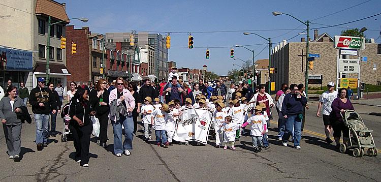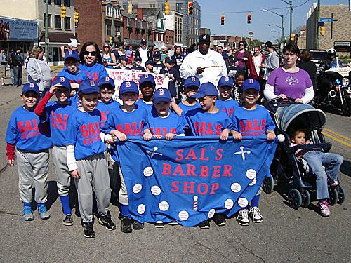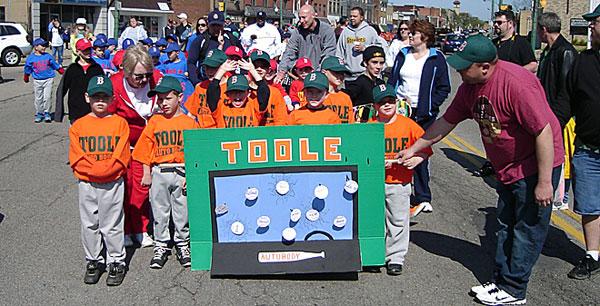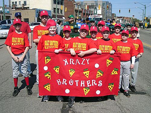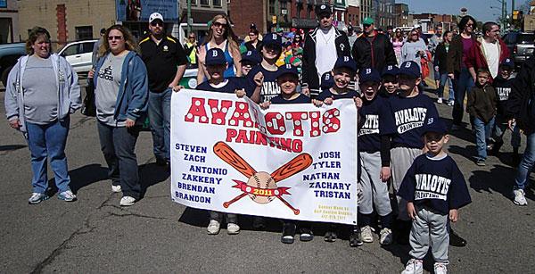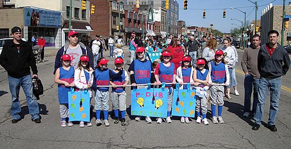 APRIL 30 - The Brookline Little League kicked off their 61st season with the annual parade along Brookline Boulevard to Brookline Park. The weather for opening day was sunny and bright, perfect for a ballgame. Some of the region's familiar mascots, The McDonald's Hamburgler and Grimace, the Washington Wild Thing and the Rita's Italian Ice Cup, were on hand to help celebrate our national pastime have some fun with the kids. After the parade, the players were treated to snacks while the mascots judged the many bright and colorful team banners. It was a difficult decision. All of the banners looked great, but in the end only three could take a prize. This year's 1st Place winner was Brookline Pub, followed closely by Steeltown Sportswear and Rita's Italian Ice. After the parade festivities ended it was time for a day of ballgames, but first a special dedication was made to a man who spent 33 years with the Brookline Little League. Angelo Masullo Sr was a BLLA coach and past-president, and a mentor to the many kids who knew him, from 1967 to 1999. Big Ange passed away in 2005. The bronze plaque on the BLLA Wall of Fame is a nice tribute to his enduring spirit of service and devotion to the league. And now it's time to play ball. Good luck to all of the teams. Remember the time-honored tradition, taught to us old-timers by Ange Masullo, the coach who made us work hard on our skills oh so many summers ago: Hard Work Makes Winners. Have a great season everyone! Click on images for larger pictures * Photos provided by Clint Burton * |