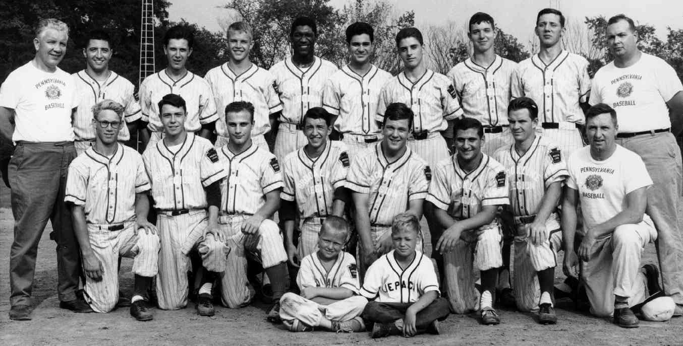 1964 American Legion State Finalists Sitting: Batboys Jimmy Flavin and Garry Hartman. Click on image for a larger picture. The 1964 Brookline American Legion team made a fine run at the state championship in Allentown, Pa., winning two of four games in the round-robin finals. The team was comprised of local baseball talent that was seasoned in post-season playoff competition. Many of the players had made impressive showings by Brookline teams in the official Williamsport Tournament, both on the Little and Senior level, a yearly occurance. It seemed only fitting that another strong showing would follow Brookline's second consecutive first-place regular season finish. It also gave the Legion team a chance to avenge their loss to Hazelwood in the 1963 county final. In the post-season county tournament, Brookline lost the first game to McKeesport, 3-0, then rebounded to win their next five outings to capture the championship, and a trip to Allentown. Manager Henry Hofbauer Jr guided the team past Homewood, Hazelwood, Springdale, and McKeesport. In the county final they beat Springdale for the second time by a score of 2-0. With the county championship safetly tucked away, they headed for Allentown, Pa. and the state tournament, another round-robin competition featuring the top 10 Legion teams from Pennsylvania. Brookline lost their opener to Punxsutawney, 3-0, spoiling an eleven strikeout performance by pitcher Jackie Flavin. The team rebounded on the second day, beating Beaver Valley, 9-3, and Point Marion, 5-2. Tony Sebastian earned a complete game victory against Beaver Valley, allowing only six hits. Brookline jumped out to an early 4-0 lead and added three in the bottom of the eighth to seal the win. Jackie Flavin got the win in relief against Point Marion, pitching three scoreless innings. Starter John Kain gave up five hits in six innings and left with the score tied 2-2. Brookline struck with two runs in the bottom of the seventh and added an insurance run in the eighth. Glenn Nylander hit a homer for Brookline. Game four was played against Media, one of the tournament favorites, on August 22. This game was lost by Brookline in a close contest, but we are not aware of any details, other than it was the final game for the Pittsburgh champions. The Brookline Legion team finished the 1964 season as one of the top five teams in the state of Pennsylvania. Below is an article on the first game against Punxsatawney. The information on games three and four was retrieved from a Post-Gazette news clipping dated August 22, 1964. Punxy Beats Brookline In Debut ALLENTOWN, Pa., Aug. 20 (UPI) - Bill Harper struck out 10 batters, scattered five hits and drove in his team's first run as Punxsatawney shut out Brookline of Pittsburgh, 3-0, in the opening game of the 39th annual state American Legion baseball tournament. Punxsatawney, co-favorite with Media in the tournament, got nine hits off Brookline loser Jack Flavin, who struck out 11 batters. Harper never was in trouble and was backed by slick fielding. Media, Enola, Northeastern or York and Old Forge joined Punxsatawney as opening round winners. * Reprinted from the Pittsburgh Post-Gazette - August 21, 1964 * * Photo provided by Tom Abraham * |