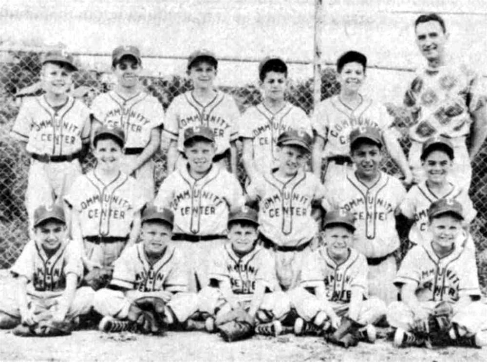Members of the 1954 Community Center team were: Ronald Bua, Gary Wright, Allen Demetrius, Joseph Mackevich, Carmen Lebder, Larry Valentine, Bernard Boyle, James Russell, William Lonero, William Mulner, Russell Zuch, Hilary Wertz, Jack Powell, Thomas Irr, James Dougherty, Manager Joe Powers and Coach Anthony Kosinski. Click on image for a larger picture. * Photo reprinted from the Brookline Journal * |