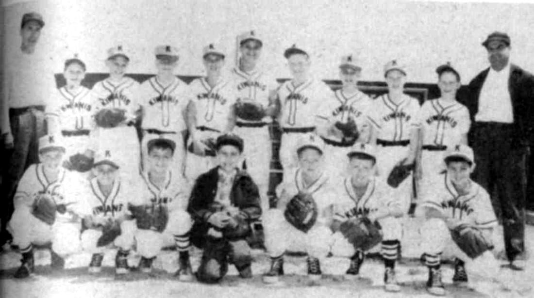The members of the 1956 Kiwanis Club team were: Ralph Cappy, Edward Puerzer, King, Don Samson, Hilary Wertz, Demas, William Marculaitis, William Neumann, Long, Martin, Dan Kail, Frank Carcione, Jack Samarco, Beisel. The manager was Joe Powers and the coaches were Pete Green and "Smokey" Rossa. Click on image for a larger picture. * Photo reprinted from the Brookline Journal * |