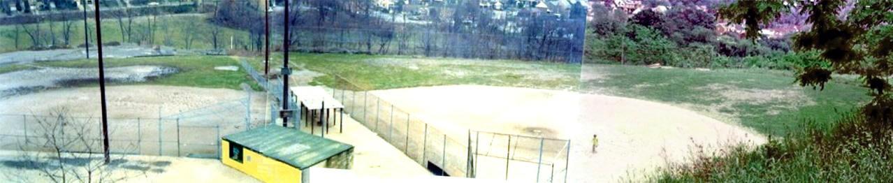 This picture above was taken in the summer of 1978 from the hillside overlooking the old Pony League field, which at this time was the Girls softball field. The Little League field, on the other side of the bleachers with the tell-tale bare spots in the outfield grass, had been in use since 1951. Note the old refreshment stand, and the dugouts with the corrogated steel roof. This area is now home to a swimming pool, batting cage and a small T-Ball field. Those of us who grew up playing on these fields will never forget the thrill of hitting a homer off the Recreation Building (or watching Eddie Beveridge pound them over the building), and let's not forget the rude awakening when a foul ball banged off the dugout roof and sent shockwaves through the feint at heart. After graduating to Pony League, we hit doubles over the short but high chicken wire fence in left field. How about the old spring that always made the Pony League backstop area into a muddy mess, and Sam Bryen sitting at his post between the Little League backstop and the refreshment stand, religiously announcing our achievements in a way that only he could? "Heads up Seniors!", he would warn when a foul ball was hit to the right. Neighbors would sit on their porches and listen to the progress of the games, courtesy of Sam. I will always remember the way friends would stand behind the Pony League field in left center and wait for a pop-up to clear the fence, then run down into the woods to retrieve the ball. We were never in need of fresh balls for a pick up game! It got so bad that the league started buying cheap plastic-coated balls because so many were lost. Old Sam used to give sno-cones (ice balls) to anyone who would be kind enough to bring the balls back. There are so many wonderful memories of the years spent on these fields with friends and foes alike. As Archie and Edith Bunker crooned, "Those were the days!" This picture was from one of the last games played on the old field, featuring B.Y.M.C. (at bat) versus Legion in 1981. Gregg Gielas, who has the honor of hitting both the last homerun on the old Little League field and the first homerun in the new Sam Bryen Complex, is in the on-deck circle, with commissioner Angelo Masullo behind the backstop sitting in Sam Bryen's familiar spot as the scorekeeper and announcer. The old hillside behind the field, the concession stand, the rusting fence, the weeds along the third base line, the old rusting dugout, the fans behind the backstop fence, the official scorer and announcer, the little corner on-deck area and the row of bicycles all seem so familiar, like it was only yesterday that these were everyday sights. The passage of time has replaced the old venue with a new modern baseball complex, but it can't replace the memories of the generations that grew up on these well-trodden grounds. One last photo to compare with the one above. This was taken in 1968 and shows the field with the old dugout and bleachers. Taken from near the same spot as the picture above, this shows how the old fields changed in the thirteen years before their eventual replacement. * Photos provided by Doug Brendel and Gary Gielas * |