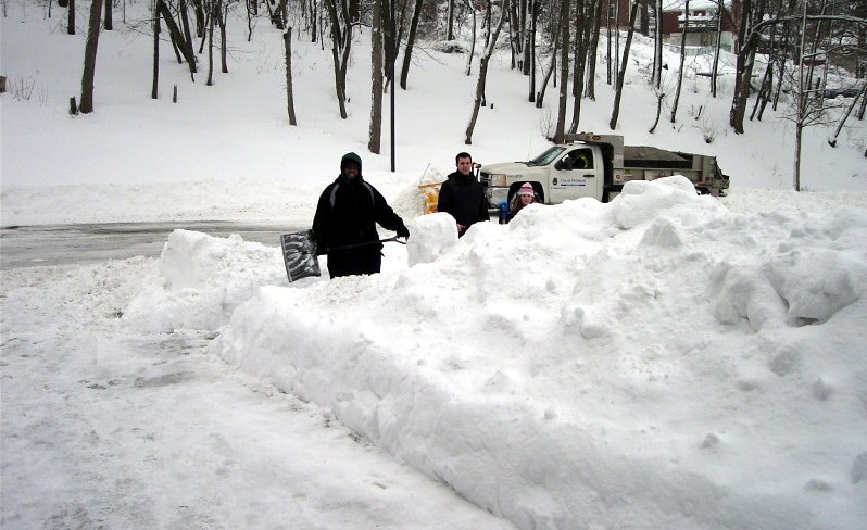 On Friday, February 5, the snow began to fall. By the time the Rec Center closed at 9:00pm six inches had fallen. The blizzard continued until noon the following day. By then, the total reached 21.1 inches. The city was declared a disaster area. Several Citiparks Centers, including Brookline Memorial, were opened as warming places for the thousands of citizens without power. Three days later another snowstorm hit, dumping an additional 7.9 inches. On Friday the 12th, the big cleanup began in earnest. City trucks and plows scoured the community, removing mounds of snow from the streets and dumping the loads in the lower parking lot. The situation slowly improved as the streets were cleared.
