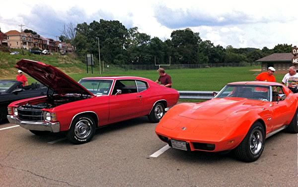 On Friday, August 10, 2012, the Brookline Recreation Center hosted the 7th Annual Brookline Breeze Week Car Cruise. Some strong afternoon thunderstorms threatened to cancel the show, but the skies eventually cleared and the show was on. The wet afternoon kept some of the Cruisers at home, but there were still quite a nice variety of classic vehicles lining the lower parking lot at Brookline Park. Patrons were treated to some good cruisin' music by "The Bob" and some of Milan's almost-famous grilled hot dogs, along with several other tasty treats. Prizes were raffled off and awards were presented to the top three vehicles, as voted on by the crowd. It turned out to be another successful Car Cruise, and a great way to get ready for the adrenaline flowing for 31st Annual Brookline Breeze 5K Fitness Run/Walk and Mini-Breeze the following morning. Click on images for larger pictures * Photos provided by Kathy Rudolph and Erin Faulk * |