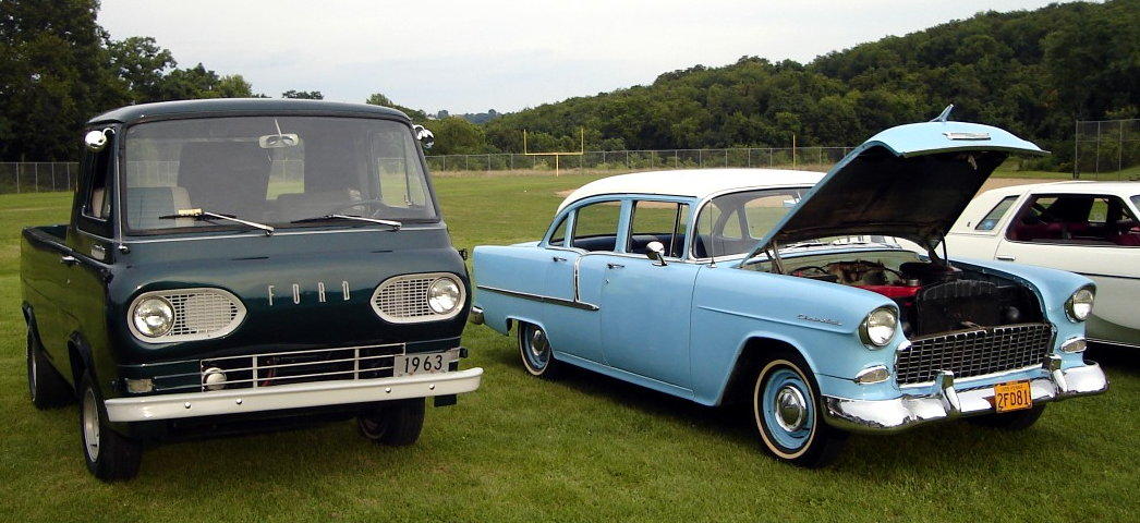 Brookline, the owner of an aqua and white 1960 Ford Edsel Ranger.