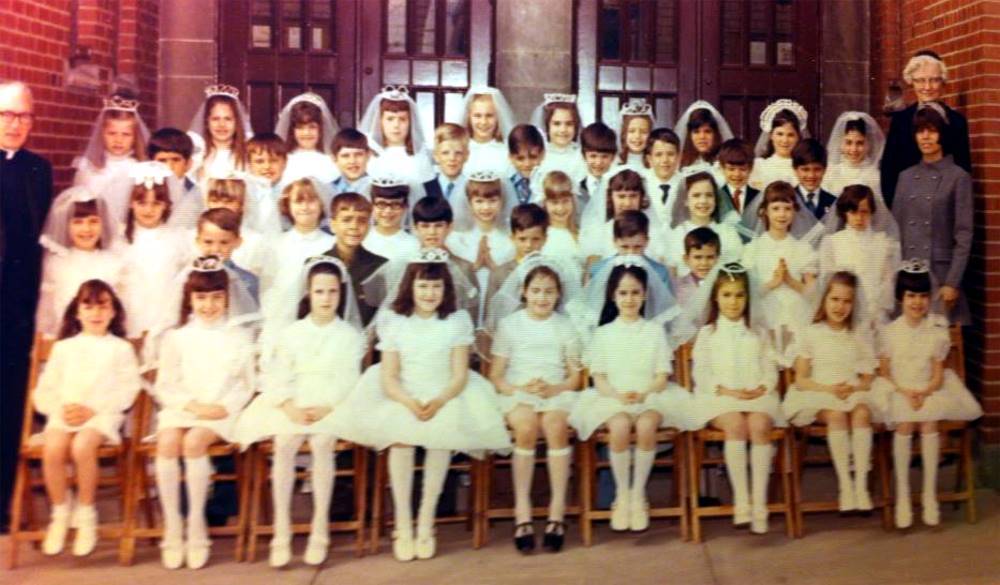 Here's one of the 2nd grade class photos from 1971 at Resurrection Elementary School. The occassion is First Holy Communion.