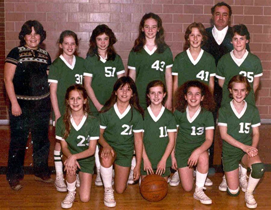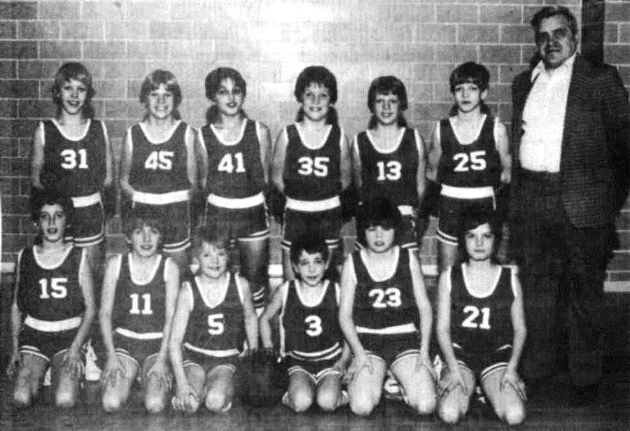 Two players received honors at this tournament. Dave Binkowski was selected to the all-tourney team while Chris Sestilli was selected as the tournament's MVP. Chris was ultimately chosen to participate at Shaler High School where he proved why he is considered by coaches as the premier 6th grader in the Diocese by scoring 28 points. This was accomplished in only two quarters of play! It can be honestly said that Resurrection was the #1 team in the entire Diocese since they also had defeated the Class B champion, St. Angela of White Oak by 20 points. What is Coach Ang Masullo's secret? Most people say it's his dedication to the youth of the Brookline community, whether it's basketball, baseball or any other activity in which he is involved. It's also his ability to remain a friend to the hundreds of young men he has in some way been involved with. More than that, its the respect that these boys have for Ang, whether they're 6th graders or seniors at the local high schools. If you've participated in basketball or baseball in Brookline, then you've had to have met Angelo Masullo. Three cheers for the sixth grade Ressi Raiders, rulers of the Diocese and masters of their craft. And hats off to Coach Ang, the community leader, manager and coach, for helping the youth not only of Resurrection, but of the entire Brookline community. * Reprinted from The Brookline Journal - April 29, 1982 * Boys Varsity Kneeling: John Wiegold, Joe Coyne, Pat Borelli, Paul DePasquale, Mike