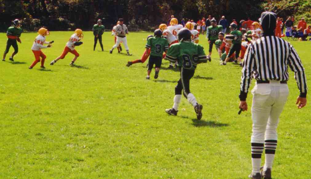 Jordan Mihelcic (helmet behind #3's left shoulder) lunges in a valiant attempt at a two-point conversion, but he was held back by a stingy Springview defense.