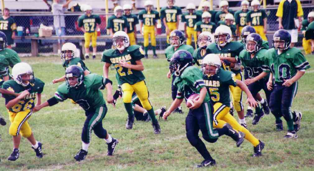 Zach Sheridan looks for daylight in the Mitey-Mites opening day game at Carlynton.