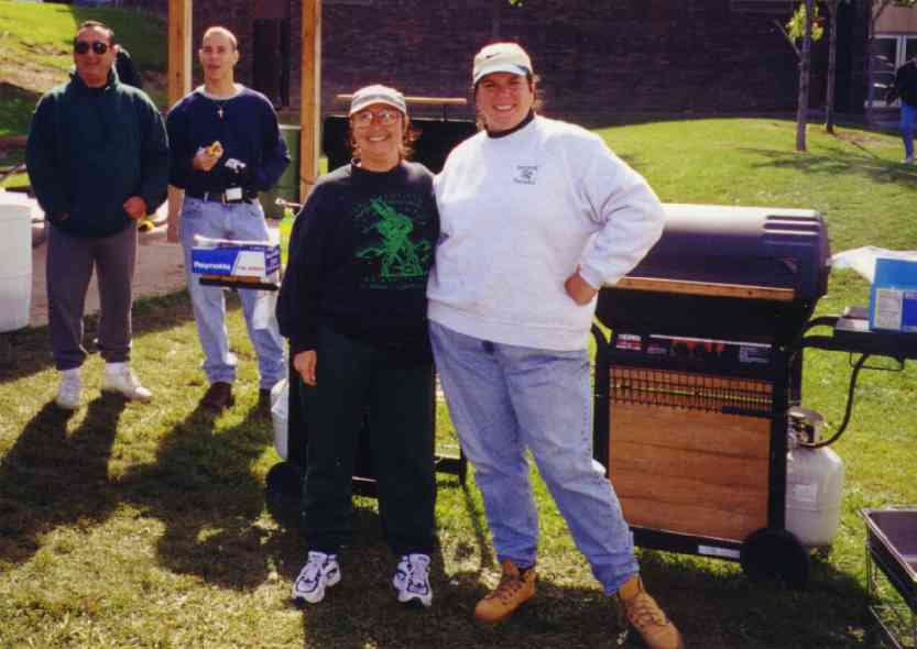 Louise Tsangaris and Lisa Blake took care of the grill, 500 or more hotdogs worth, while Mr. Butch and Andy sample the product.