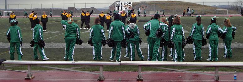 The Brookline cheerleaders braved the chilly temperatures and