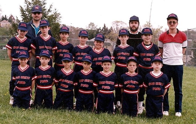 Mike Paga, Bobby Mazzeo, UNKNOWN. Standing: UNKNOWN, Coach Carl Difiore, UNKNOWN, Rocco Nicholas,