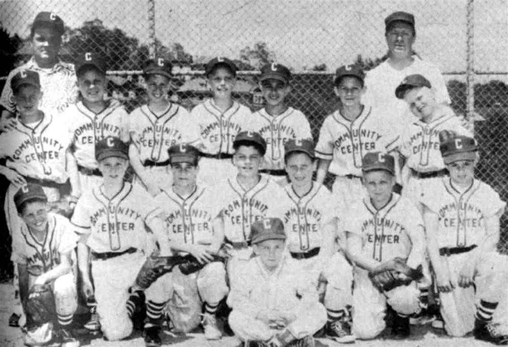 Members of the 1955 Community Center team were: Thomas DeBasi, Dennis Hoff, Carmen Lebder, Thomas Miller, James Patrick, Richard Schneider, Chris Terzis, Joseph Goetz, Jack Kress, Joseph Mackevich, William Mullner, Richard Puerzer, Don Samson, Anthony Torcasio, Bert Wetmiller, Manager Bud Auen and Coach Johnny Leaf. Click on image for a larger picture. * Photo reprinted from the Brookline Journal * |