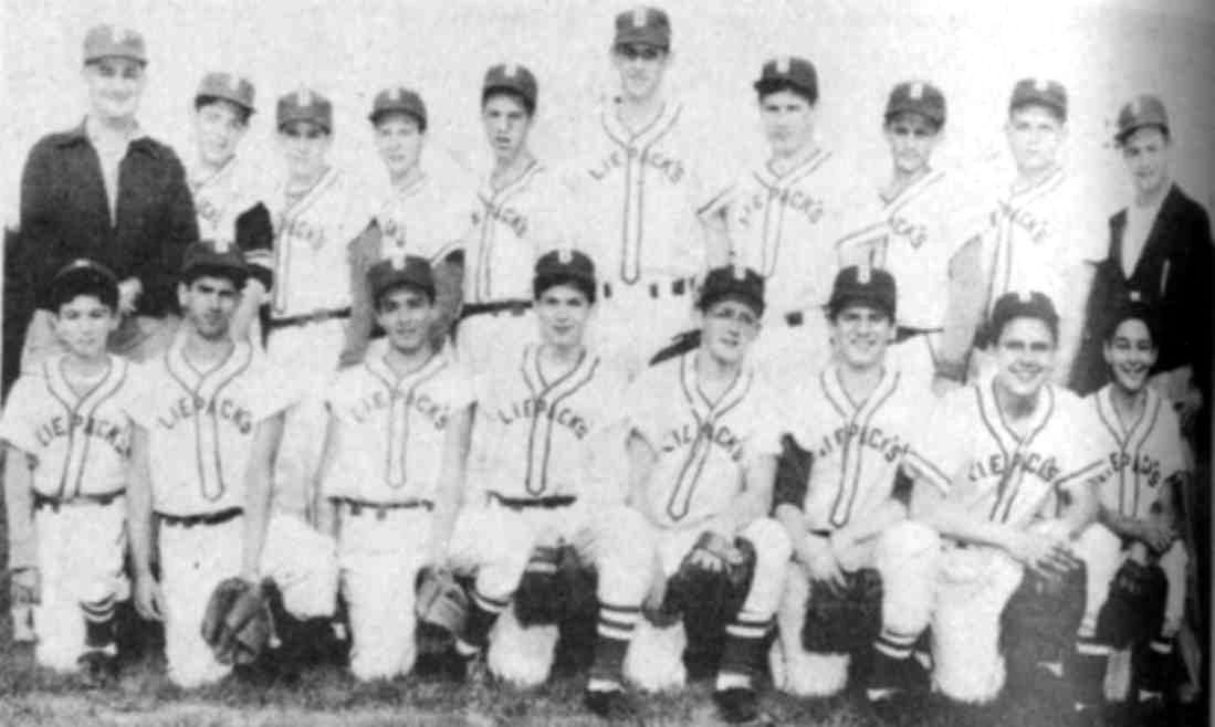 The members of the 1956 Liepack's Pharmacy Prep team were: Carmen Lebder, G. Cardone, Albert DelMastro, Daniel Sweger, P. Blumel, P. Conovali, James Metz, C. Moessinger, B. O'Brien, Gary Wright, R. Dowling, V. Doyle, G. Seaver, B. McGroarty, Richard Mezyk, D. Wyse, Manager Sam "Eli" Bryen and Coach V. Tischuk. Click on image for a larger picture. * Photo reprinted from the Brookline Journal * |