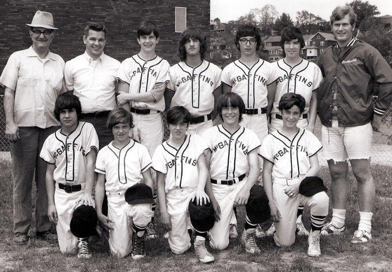 Flowers. Standing: League President Sam Bryen, Manager Ed McGrath, Bill Farrell,