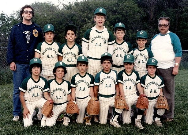 Kneeling: Bob Moses, UNKNOWN, Mike Oliver, Brian Matts, Jeff Renk, Brian Schneider. Standing: Coach Tim Tarr, UNKNOWN, Bill Schratz, Mark Bernotas, Matt Dingus, Steve Lambert, Manager Don Tarr.