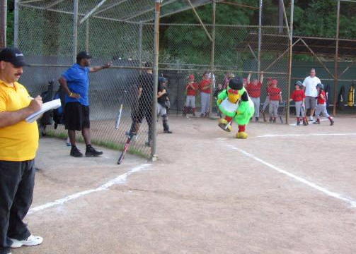 In June of 2006, the zany mascot of the Pittsburgh Pirates, The Pirate Parrot, paid a surprise visit to Brookline Park and Sam Bryen Fields. The unexpected guest arrived in a limosine that caught the eye of most people mingling in the park. The car pulled up to the ballfield entrance, the door opened, and out popped the Parrot. The unexpected appearance had most people stunned, and the kids rushed to meet the overstuffed bird. The Parrot mingled with fans near the front entranceway, then made its way to the baseball, then the softball field. The Avian Anomaly took a turn at the plate on both stops. After a weak at bat on the baseball diamond that resulted in a foul for the fowl, the Parrot moved on to the softball scene. The girls dished up a sweet one and the Parrot hit the ball into the gap. As the outfielders ran towards the fence to field the ball, the feathered fowl circled the bases, it's oversized feet kicking up a trail of dust, for an inside-the-park homerun. Go Bird! After a couple personal photo ops, the Parrot retired to his private stretch-birdcage and flew the coup, but not before giving the parents and children of the Brookline Little League a night to remember. Click on images for larger pictures * Photos taken by Shawn McMahon * |