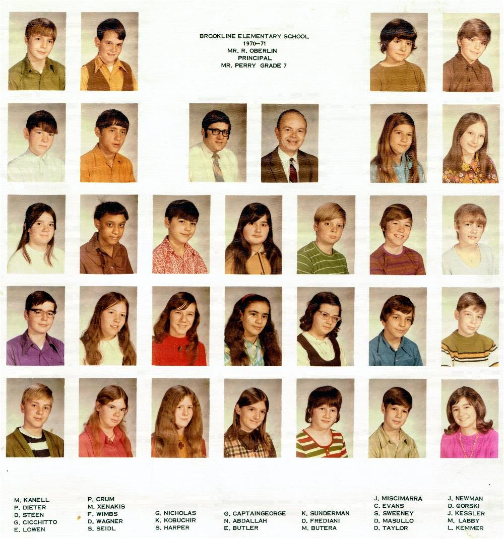 Here are the two 7th grade class photos from Brookline Elementary during the 1970/1971 school year.