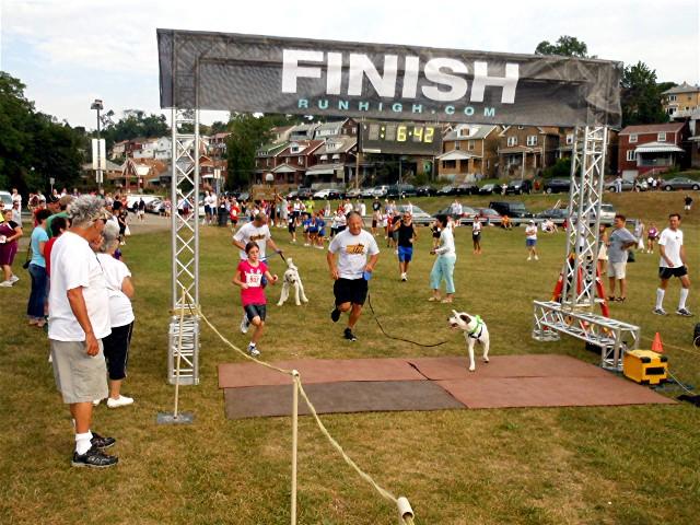 with a time of 5:56. The first pooch to cross the line was "Missy",