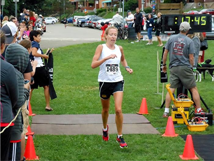 with a time of 15:58. Roberta Groner, of Irwin, PA, crossed the line at 17:46