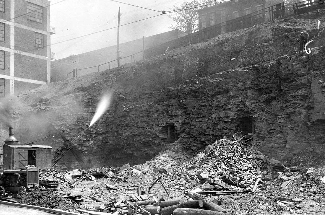 The Hidden South Portal The southern portals of the Armstrong Tunnels, with its stone facing and granite lining, became a familiar site to travelers making their way across the river or along Second Avenue. They remained a constant visual piece of the south face of the Bluff for thirty years.