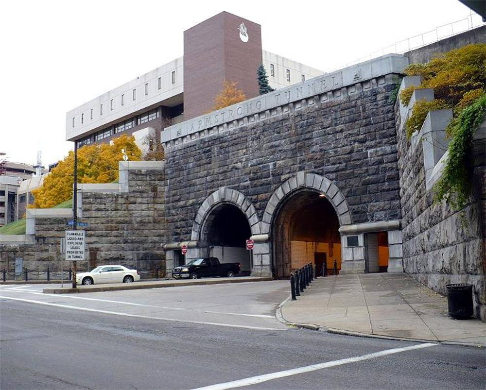 History of the Armstrong Tunnel The Armstrong Tunnel, opened in 1927, connects Second Avenue, at the South Tenth Street Bridge, to Forbes Avenue between Boyd Street and Chatham Square. The twin-bore four-lane tunnel passes under the Bluff (Boyd's Hill/Duquesne University) and vehicular traffic averages more than 11,000 drivers each day. Approaching the 100-year mark, this notable Pittsburgh tunnel was listed as a historic landmark in 1986. A Tunnel Is Needed When Pittsburgh annexed the town of Birmingham (South Side) in 1872, the need arose for better access to the southern shore of the Monongahela River. Most traffic relied on the Smithfield Street Bridge and an old wooden covered bridge at South Tenth Street. Travelers to the Bluff relied on the Fort Pitt Incline, which opened in 1882. Increasing vehicular traffic necessitated that the aging wooden structure be replaced with a metal through truss bridge in 1904. When the incline closed in 1906, city steps were built for commuters to reach the heights, but a serious traffic bottleneck was developing for motorists to reach the heights or just get around the mountainous Bluff.