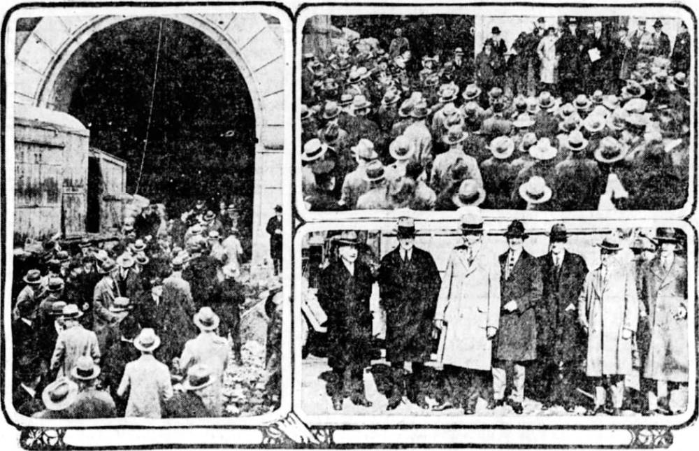 The east tube was holed through in six months and the west tube through likewise in record time. A total of 2800 feet, over one-half mile, driven in less than ten months. During the excavation work, over 80,000 cubic yards of earth and rock were removed. On November 4, 1926, the crews boring the second tunnel tube broke through the final rock to complete the excavation process. The tunnels were officially dedicated on November 6, 1926. Pittsburgh's new engineering marvel was named in honor of County Commissioner Joseph G. Armstrong, who had previously served as a member of the Select Council, Coroner (1905-1909), Director of Public Works (1909), Mayor of Pittsburgh (1914-1918), County Treasurer (1919-1923). This was followed by a trip through the tubes by county and city officials.