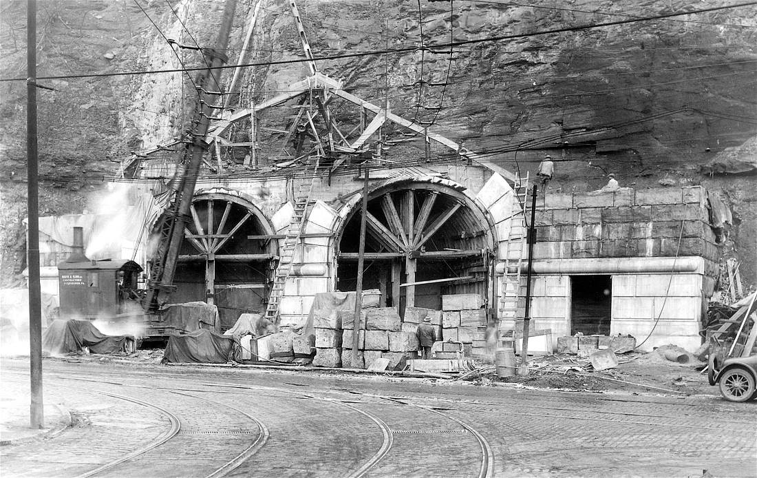 A proposal by Joseph G. Armstrong in 1908 to open a passage under Boyd's Hill was seen as a way to relieve traffic in the upper Triangle and increase access to both the northern side of the Bluff and, conversely, for travelers in the opposite direction to reach the South Side. It took nearly two decades of planning during a time when major improvements like the Boulevard of the Allies, the Liberty Tunnels and Bridge and McArdle Roadway took precedence. Armstrong's Dream Becomes Reality The tunnel portals were designed by City Architect Stanley L. Roush, and Vernon R. Covell of the Allegheny County Public Works Department was the chief engineer. Booth and Flinn, Ltd., the company that had recently completed the Liberty Tunnels, was awarded the $1,600,000 contract, paid for by the $29 million County Bond Issue of April, 1926. The boring of the 1437 foot tubes began on January 18, 1926.
