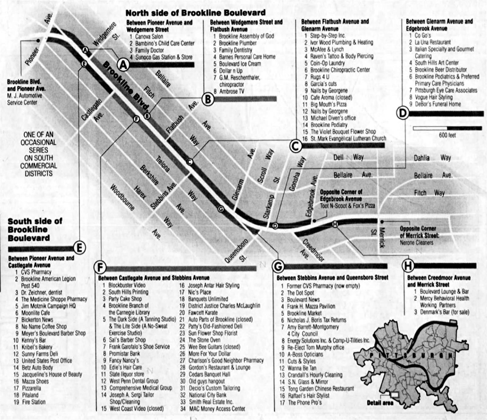 A merchant listing for Brookline Boulevard in May 2001.