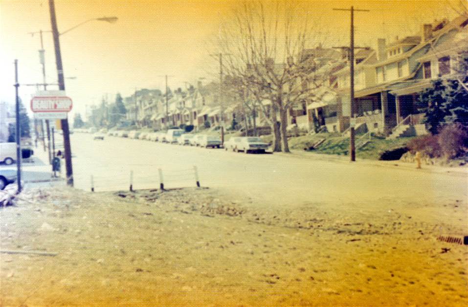 This is the lower end of Brookline Boulevard, looking from the Breining Street intersection up the hill towards Whited Street, in the summer of 1973. The photo is taken from the parking lot of the East Brookline Shopping Center. Only seven years earlier, this wide stretch of roadway was divided down the center by the old streetcar right-of-way, which was removed and paved over in 1966. The trolley line ran down the boulevard and passed through the dirt area to the right on its way towards the Brookline Loop two blocks further down the road. Many residents lamented the loss of the streetcars, which were replaced with bus service, but their dissappointment was tempered by the widened roadway that now offered four lanes from Breining Street to Edgebrook Avenue. Above is the East Brookline Shopping Center, which was built in the 1940s and stood until 1981, when the building was demolished to construct the Parkside Manor apartment complex. This was once a popular shopping destination for residents of the 32nd Ward of Brookline. The shopping center contained a Laundromat, Open Pantry Food Mart, a beauty salon and Manco's Pharmacy, formerly known as Liepack's Pharmacy. Also shown in the photo are two popular businesses that stood on Brookline Boulevard near the corner of Breining Street, Jay's Hardware and Mary and Bob's Bar, now called Marshall's Lounge. The final picture was taken that winter during a heavy snowfall. Aside from the rising snow and the recently plowed and salted boulevard, it shows the front of the Brookline Fabrics building at 1250 Brookline Boulevard. The spacious building, which was later used as a staging are to sell movie cinema accessories, actually houses a mini-theatre on the second floor. It is currently owned by Pro Knitwear, a company that specializes in the manufacture of athletic uniforms. Their clients include the Pittsburgh Steelers, Pittsburgh Pirates, Pittsburgh Penguins and Pitt Panthers, for whom they supply game day uniforms. Click on images for larger pictures. * Photos provided by Joe Masullo * |