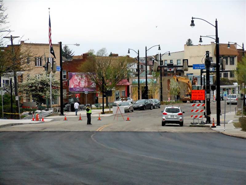 Starkamp Avenue. The road closure created a bit of a traffic jam.