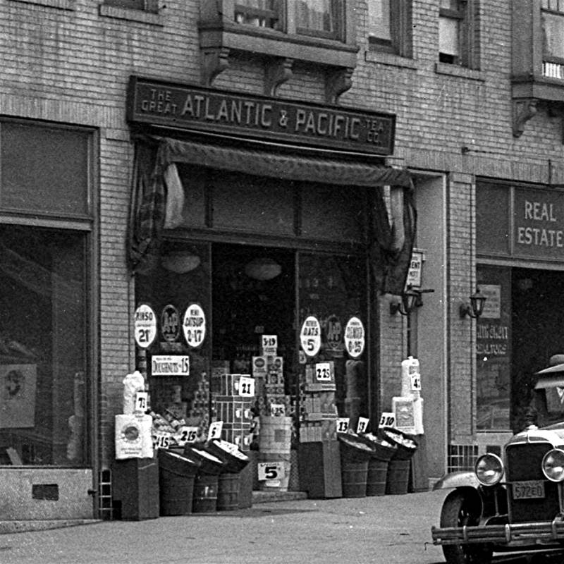 We've made mention many times about how Brookline Boulevard was like an outdoor mall, with stores and shops that catered to most every need of the local residents. A person could ride up to the boulevard on the trolley, do all of their shopping and catch a ride back home. Photos that capture most of Brookline Boulevard on January 17, 1933, show how diverse the shops were in the commercial district, especially the abundance of grocery, meat and dairy markets, pharmacies, bakeries and confectioneries. The photos show no less than fifteen grocery/meat/dairy markets (four of which were Atlantic & Pacific stores). Grocery/Meat/Dairy Markets