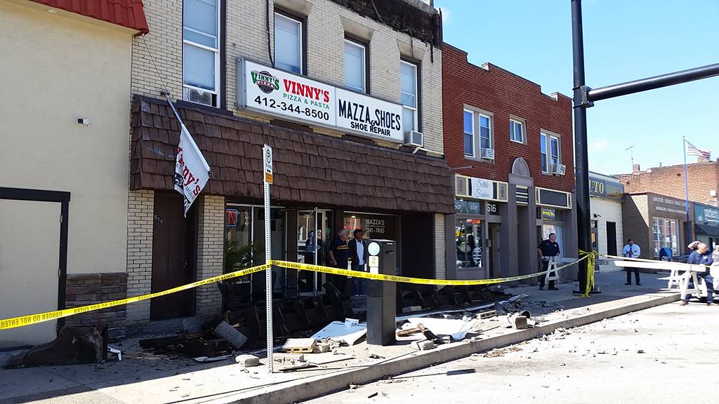 afternoon, a loud crash was heard outside of Mazza Shoes and Vinnie's Pizza at