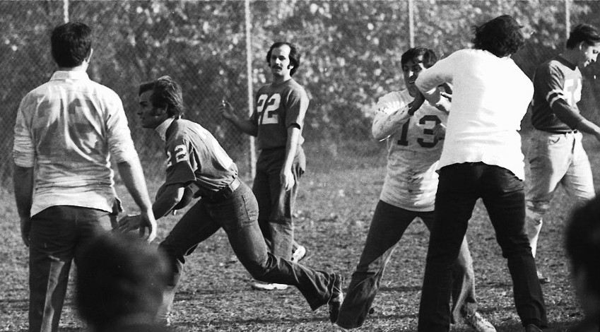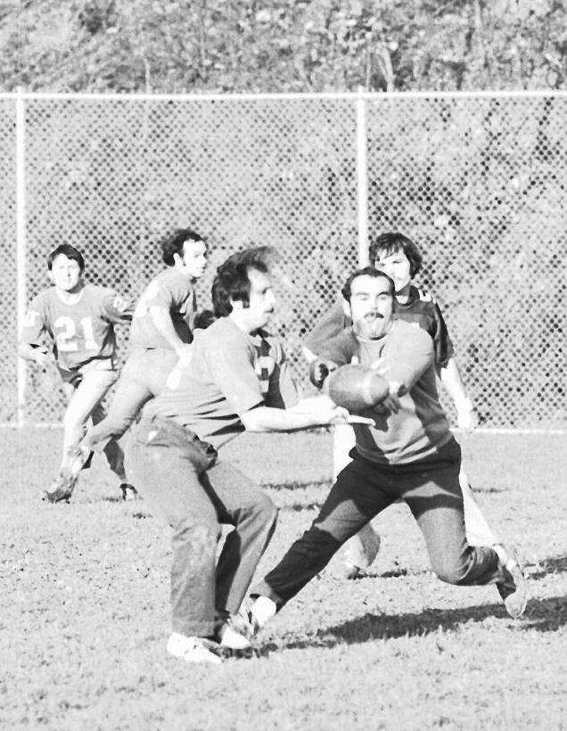 Pick-up football games are something that has been happening at Moore Park since the first day they laid out a field. It seems like there was a lot more of it back in the old days. Now the kids just pick-up the latest Madden Football game for their XBox and veg on the couch. Thanksgiving, however, has become a traditional day for the Brookline "Turkey Bowlers" to put on their dirtiest pair of sweats and come out for a good old-fashioned game of pick-up football. * Photos provided by Tommy Zucco * |