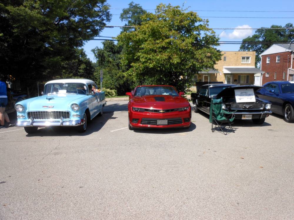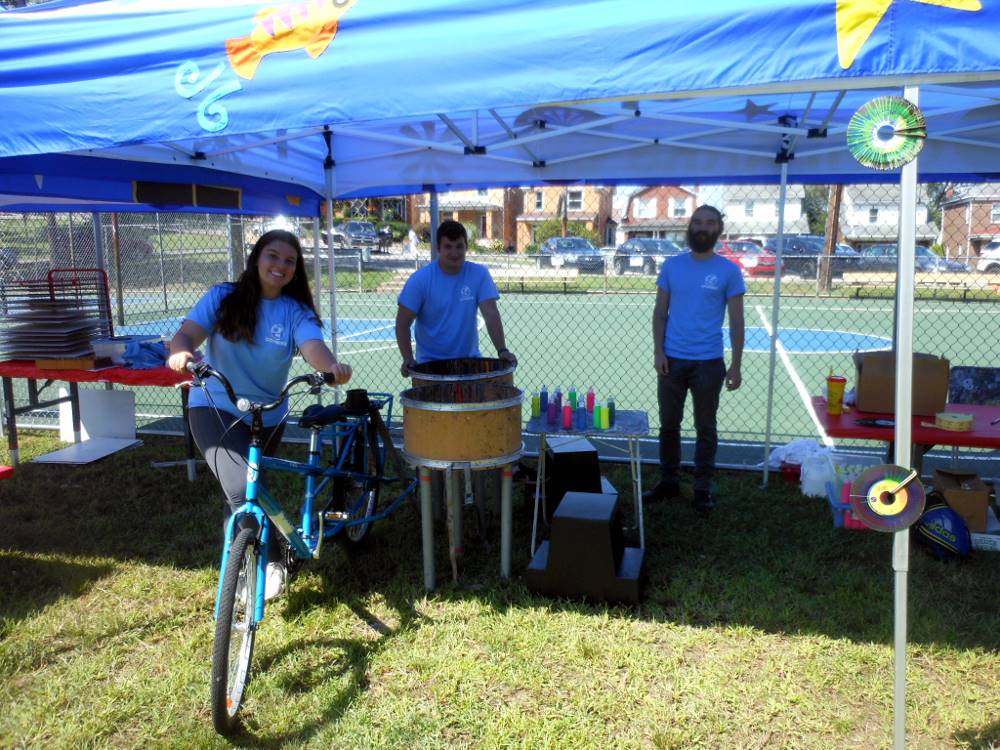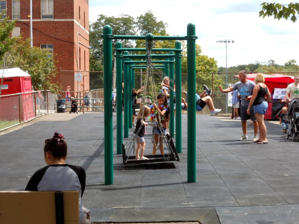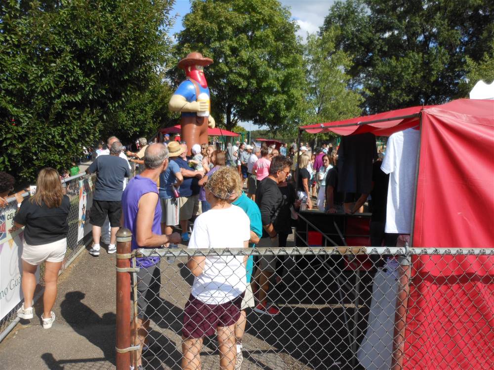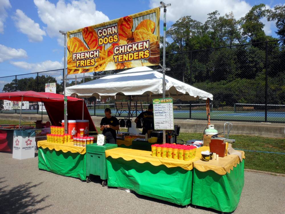 For the kids there was a Ga Ga Ball pit, the Citiparks Roving Art Cart, free admission to the pool, merchandise giveaways, the playground attractions, sprinklers and other craft booths hosted by Boy Scout Troop #6 and Girl Scout Troops #52545 and #52745. The swing sets, merry-go-round and sliding boards hadn't seen so much activity in many, many years. Adults were treated to a classic car exhibition that featured everything from a Lamborghini and Mazerati to a 1948 Oldsmobile convertible. Yoga classes were conducted on the grass by Amarah Studio and Boutique. Cartoon Anth was on hand to create personalized caricatures and illustrations. There were also merchandise booths, including artist Dino Guarino selling Moore Park Alumni shirts, and plenty of food vendors. A banner was hung by the Parks Conservancy/Brookline Connection information booth for everyone to sign.