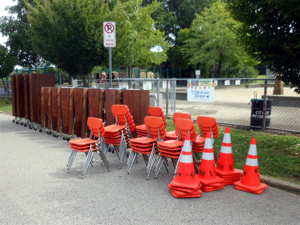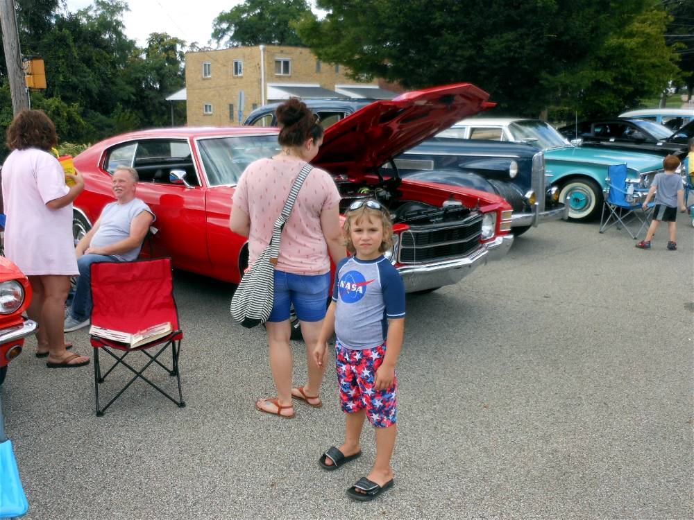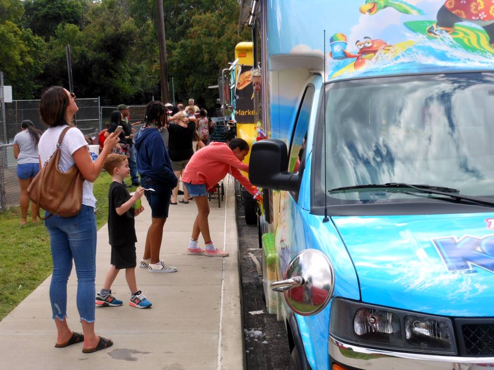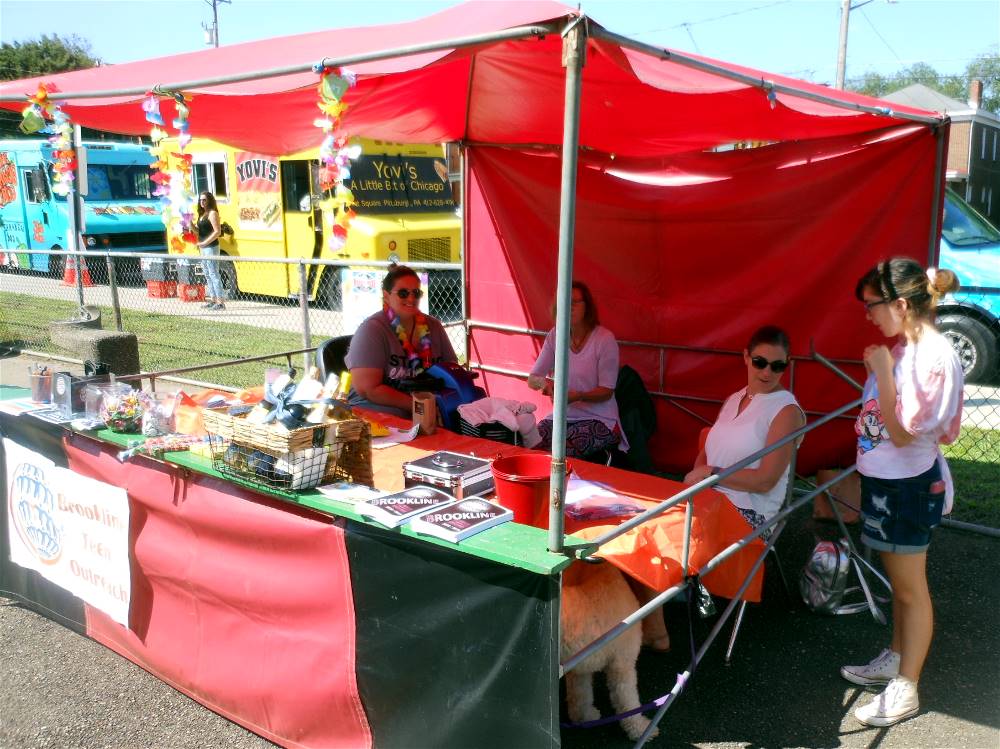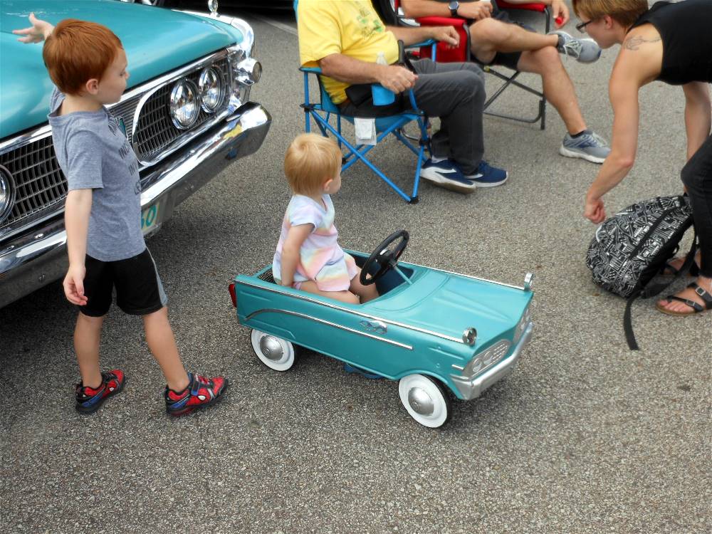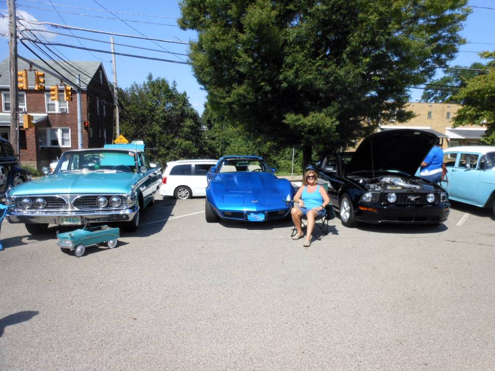 For the kids there was a Ga Ga Ball pit, the Citiparks Roving Art Cart, free admission to the pool, merchandise giveaways, the playground attractions, sprinklers and other craft booths hosted by Boy Scout Troop #6 and Girl Scout Troops #52545 and #52745. The swing sets, merry-go-round and sliding boards hadn't seen so much activity in many, many years. Adults were treated to a classic car exhibition that featured everything from a Lamborghini and Mazerati to a 1948 Oldsmobile convertible. Yoga classes were conducted on the grass by Amarah Studio and Boutique. Cartoon Anth was on hand to create personalized caricatures and illustrations. There were also merchandise booths, including artist Dino Guarino selling Moore Park Alumni shirts, and plenty of food vendors. A banner was hung by the Parks Conservancy/Brookline Connection information booth for everyone to sign.