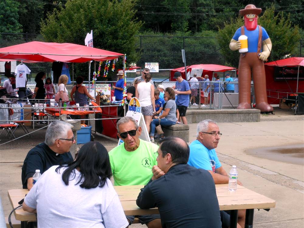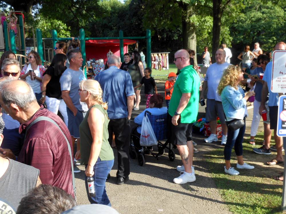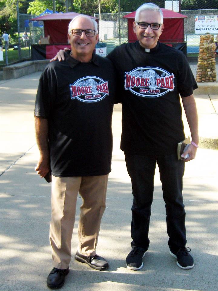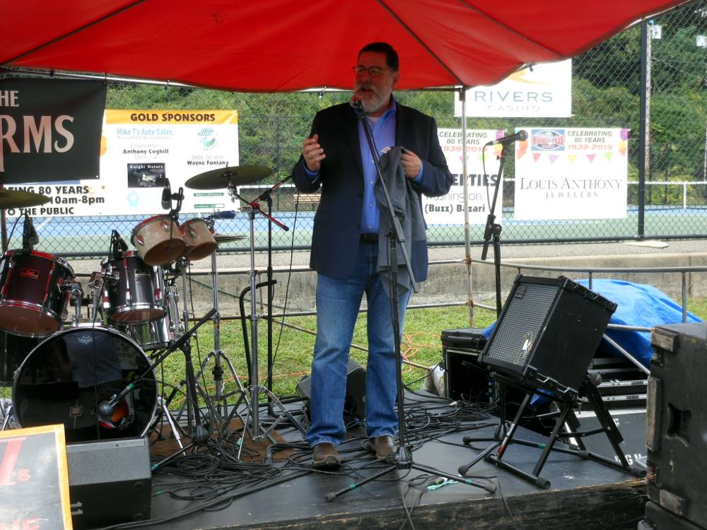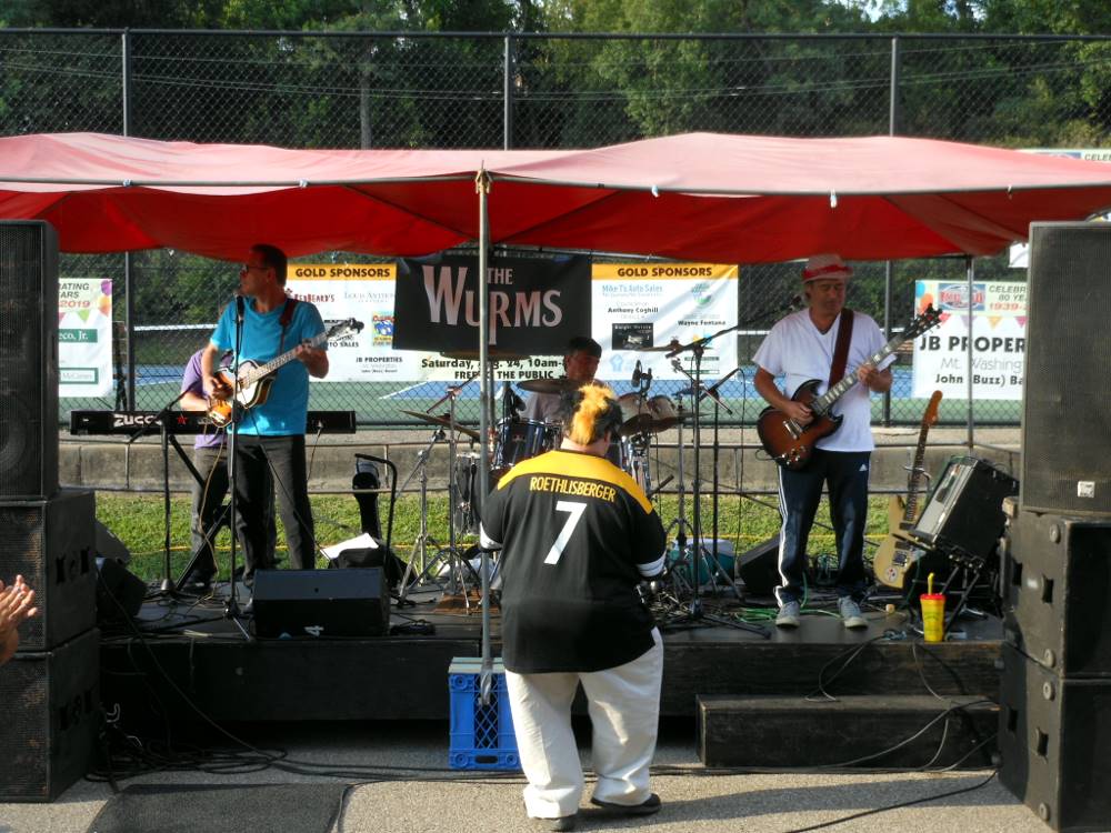 The entertainment portion of the event began with local guitarist Jake Zucco doing a rousing rendition of Jimi Hendrix's legendary National Anthem, a timely throw-back that also honored the 50th Anniversary of the legendary Woodstock Festival of 1969. This was followed by an invocation and blessing by Moore Park legend, Father Carmen D'Amico. It was a day packed full of legendary Moore Park characters, each with their own story to tell. The Fonz and DJ Kayoss (Mike Kossler) then got the crowd hopping with a wide selection of classic music. The Faiella's followed with an hour of mandolin playing, then yielded to Bobby V's live acoustic show. Nevin James performed next, paving the way for the headline attraction, Brookline's own "The Wurms," playing a variety of vintage rock covers and some of their own songs. Stand-up comedian Matt Wohlfarth added some light levity to the proceedings during the band's intermission. The Todd DeFazio Show also did a few podcast segments from the park.