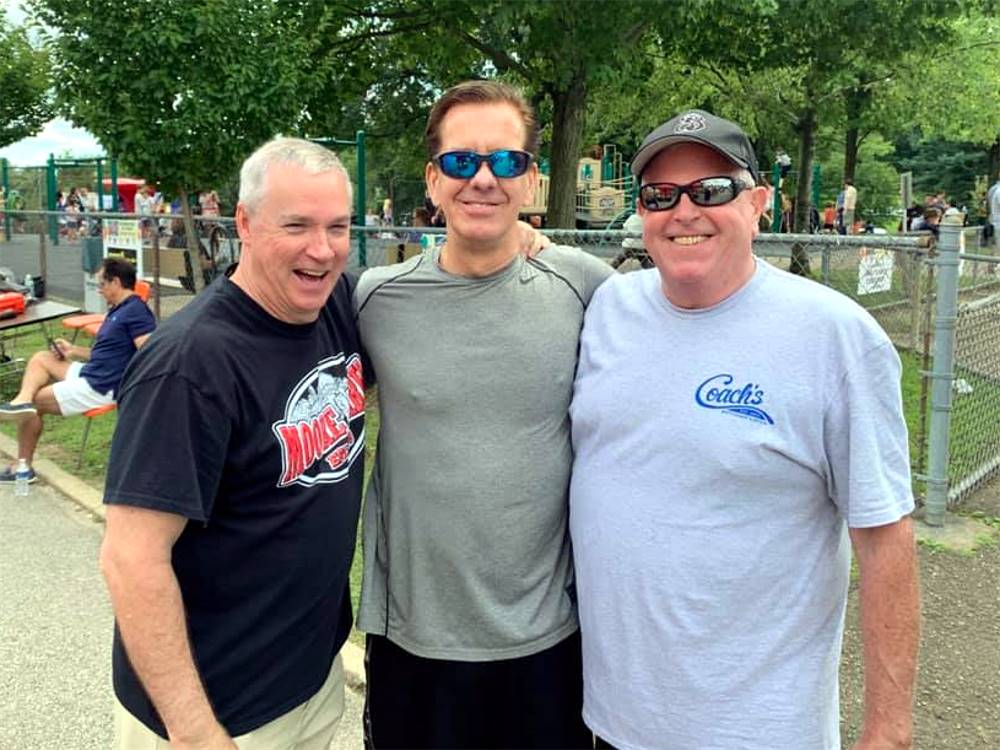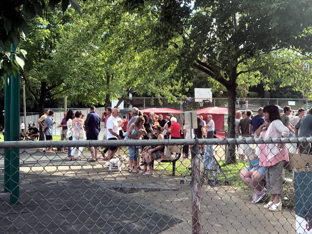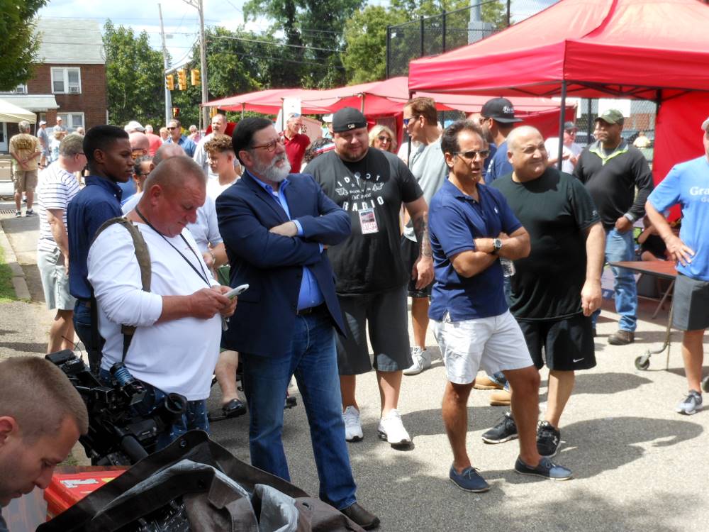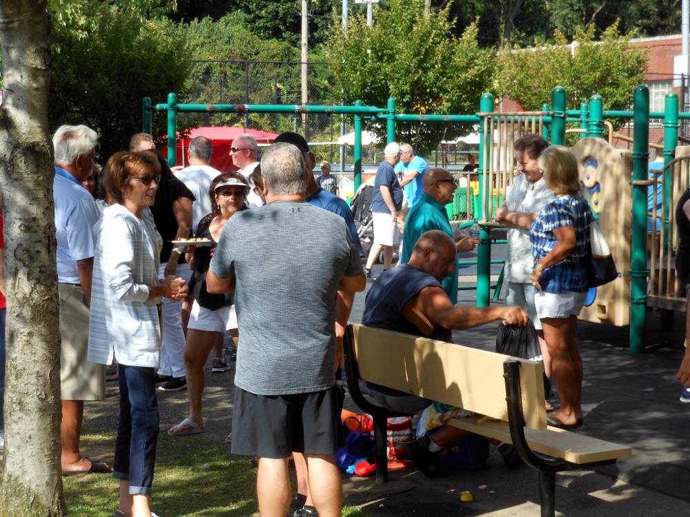 The entertainment portion of the event began with local guitarist Jake Zucco doing a rousing rendition of Jimi Hendrix's legendary National Anthem, a timely throw-back that also honored the 50th Anniversary of the legendary Woodstock Festival of 1969. This was followed by an invocation and blessing by Moore Park legend, Father Carmen D'Amico. It was a day packed full of legendary Moore Park characters, each with their own story to tell. The Fonz and DJ Kayoss (Mike Kossler) then got the crowd hopping with a wide selection of classic music. The Faiella's followed with an hour of mandolin playing, then yielded to Bobby V's live acoustic show. Nevin James performed next, paving the way for the headline attraction, Brookline's own "The Wurms," playing a variety of vintage rock covers and some of their own songs. Stand-up comedian Matt Wohlfarth added some light levity to the proceedings during the band's intermission. The Todd DeFazio Show also did a few podcast segments from the park.