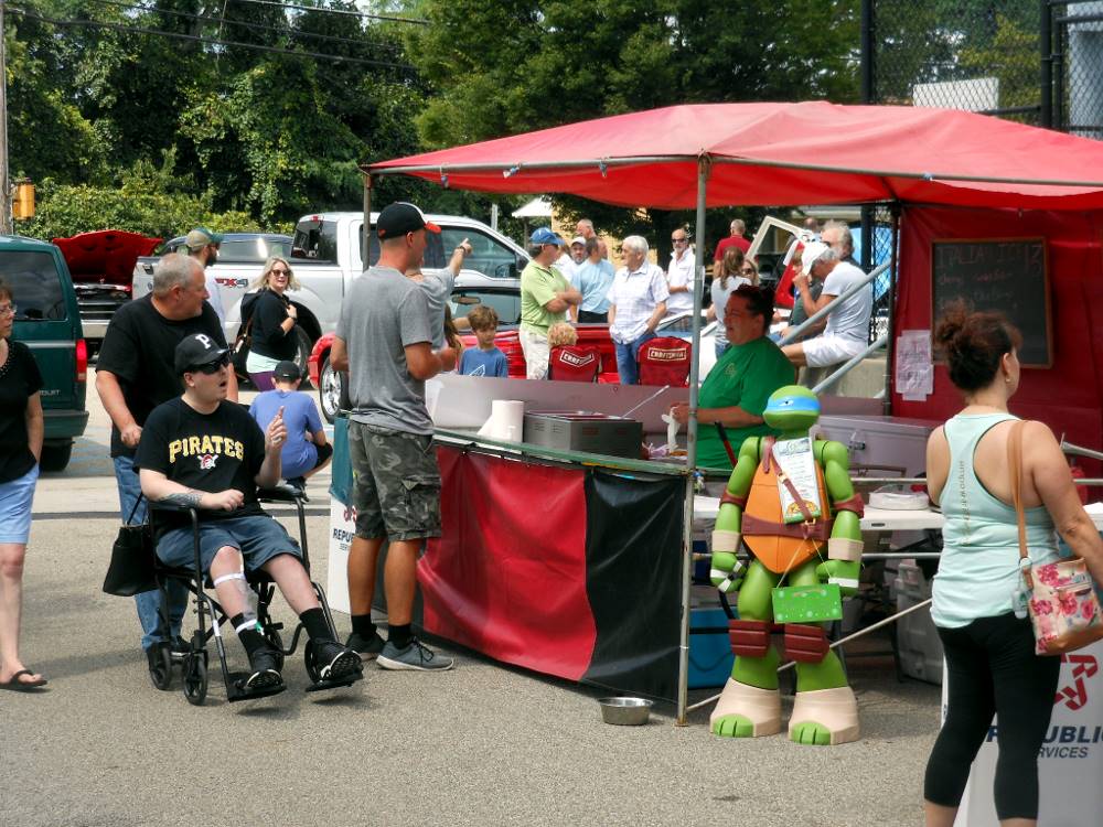In addition, festival goers welcomed a special guest when Pittsburgh Mayor Bill Peduto made a surprise visit. After mingling with the crowd, the Mayor took the stage and was presented with a Moore Park Alumni T-Shirt by Tony Guarino. He then spoke briefly about the importance of community events like this and how the togetherness displayed here in Brookline shined brightly like a beacon for the rest of the city to follow. Mostly, it was a day for Brookliners to come together, reaquaint with old friends and meet new friends. The buzz around the park was so positive, and you could see the smiles on everyone's face. For so many older folks you could see the years turning back as they discussed fondly their past experiences here in the park that was established in 1939 and built with resources provided by the City of Pittsburgh and the federal Works Progress Administration. <><><><> <><><><> <><><><> <><><><> <><><><> <><><><> The Todd DeFazio Show - August 14, 2019 The Todd DeFazio Show, with Brett Paradise and Jalapeno Hannah, on Idiot Radio, was instrumental in the pre-festival publicity, with an ad blitz on facebook, and one podcast segment dedicated to the event. On Wednesday night, August 14, festival organizer Tony Guarino and Brookline community historian Clint Burton, were his guests at Lenny Semplice's RedBeard's Sports Bar and Grill on Mount Washington. Tony talked about the event and Clint spoke in depth about the early history of the park and the man whose name it bears, Professor Joseph F. Moore. The show aired on August 19. Click on the link below to view the entire segment. https://www.facebook.com/idiotradio/videos/668157356992311/ Todd and Brett were on hand at the festival in the Idiot Radio Booth, doing short podcast segments and entertaining the kids with free gifts. In a moment of binge magic, Todd broke the World Record for eating six cupcakes in under one minute, shattering the previous mark of 59 seconds be nearly six ticks, clocking in at 53.3 seconds! Click on the link below to view one of Todd's Moore Park Celebration segments. https://www.facebook.com/idiotradio/videos/671241563372961/ The Full Festival Recap https://www.facebook.com/Double.D.Radio.Show/videos/653278215081255/ <><><><> <><><><> <><><><> <><><><> <><><><> <><><><> Getting Ready For The Big Day <><><><> <><><><> <><><><> <><><><> <><><><> <><><><> The Sponsor Booths and Food Vendors <><><><> <><><><> <><><><> <><><><> <><><><> <><><><> The Classic Car Show People's Choice Award Winners The First Place winner was